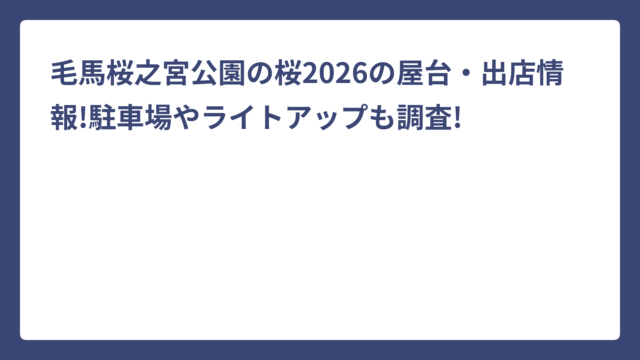 毛馬桜之宮公園の桜2026の屋台・出店情報!駐車場やライトアップも調査!
